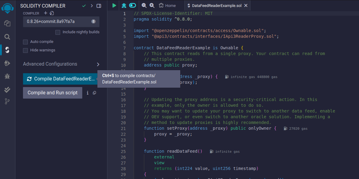 This section uses Remix IDE. If you prefer using Hardhat, you can clone data-feed-reader-example and follow the instructions in its README.